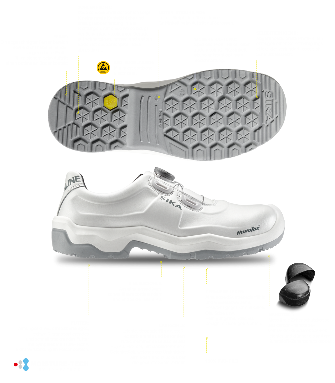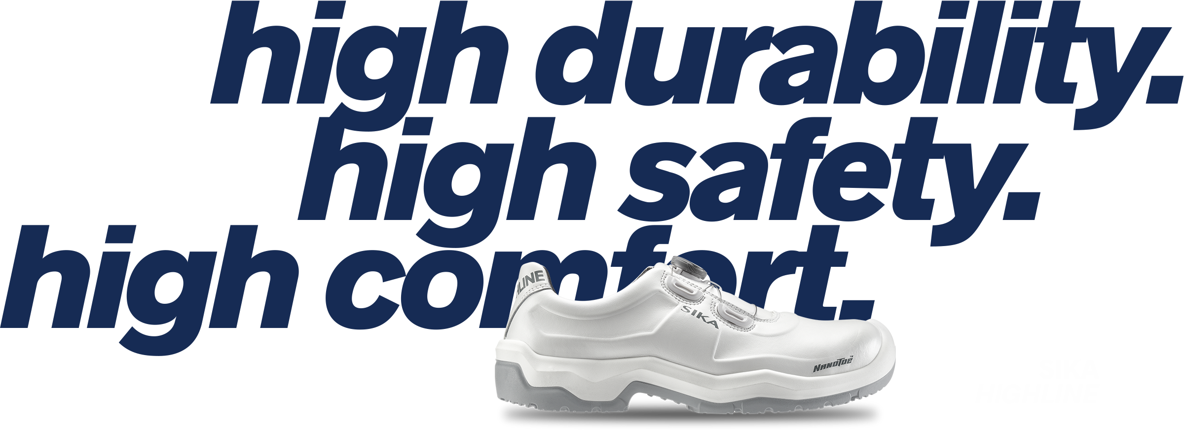 WENN ES UM KOMFORT, SICHERHEIT UND STRAPAZIERFÄHIGKEIT GEHT, IST DIE HIGHLINE-SERIE EINE KLASSE FÜR SICH. Hinter dem schlichten Design verbergen sich innovative Technologien und sorgfältig geprüfte Materialien, die zusammen einen der stärksten Schuhe des Marktes für die Bereiche Lebensmittel- und Pharmaindustrie, Küchen und Kantinen ergeben.