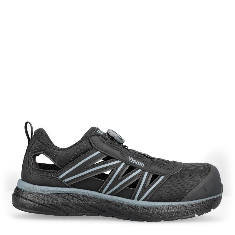 Mit diesem offenen Modell von Vismo erhalten Sie eine leichte und atmungsaktive Sicherheitssandale aus Mesh. Sie verfügt über eine strapazierfähige, rutschhemmende Gummiaußensohle sowie eine durchgehende eTPU-Zwischensohle – eines der weichsten Materialien auf dem Markt. eTPU bietet einen hohen Rückpralleffekt und sorgt für weniger ermüdete Füße. Der Schuh hat eine TPU-Überkappe und eignet sich für kniende Arbeiten. Das BOA® Fit-System sorgt für einen gleichmäßigen Verschluss und erleichtert das An- und Ausziehen.