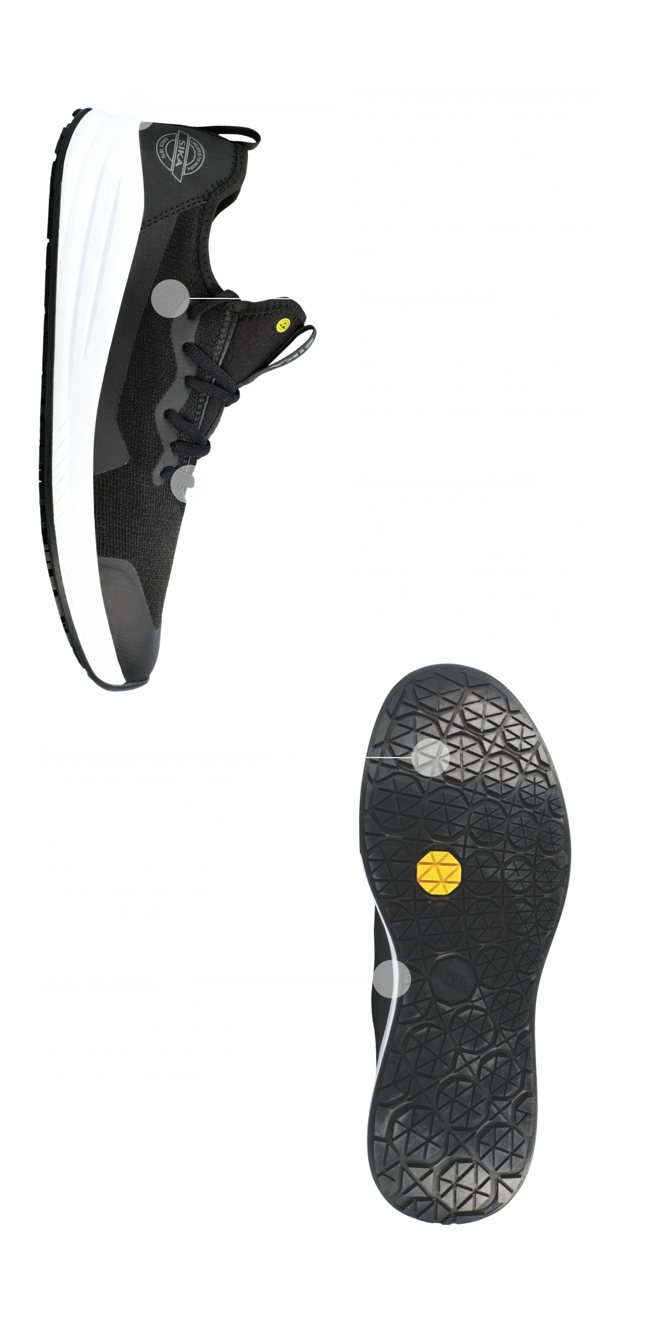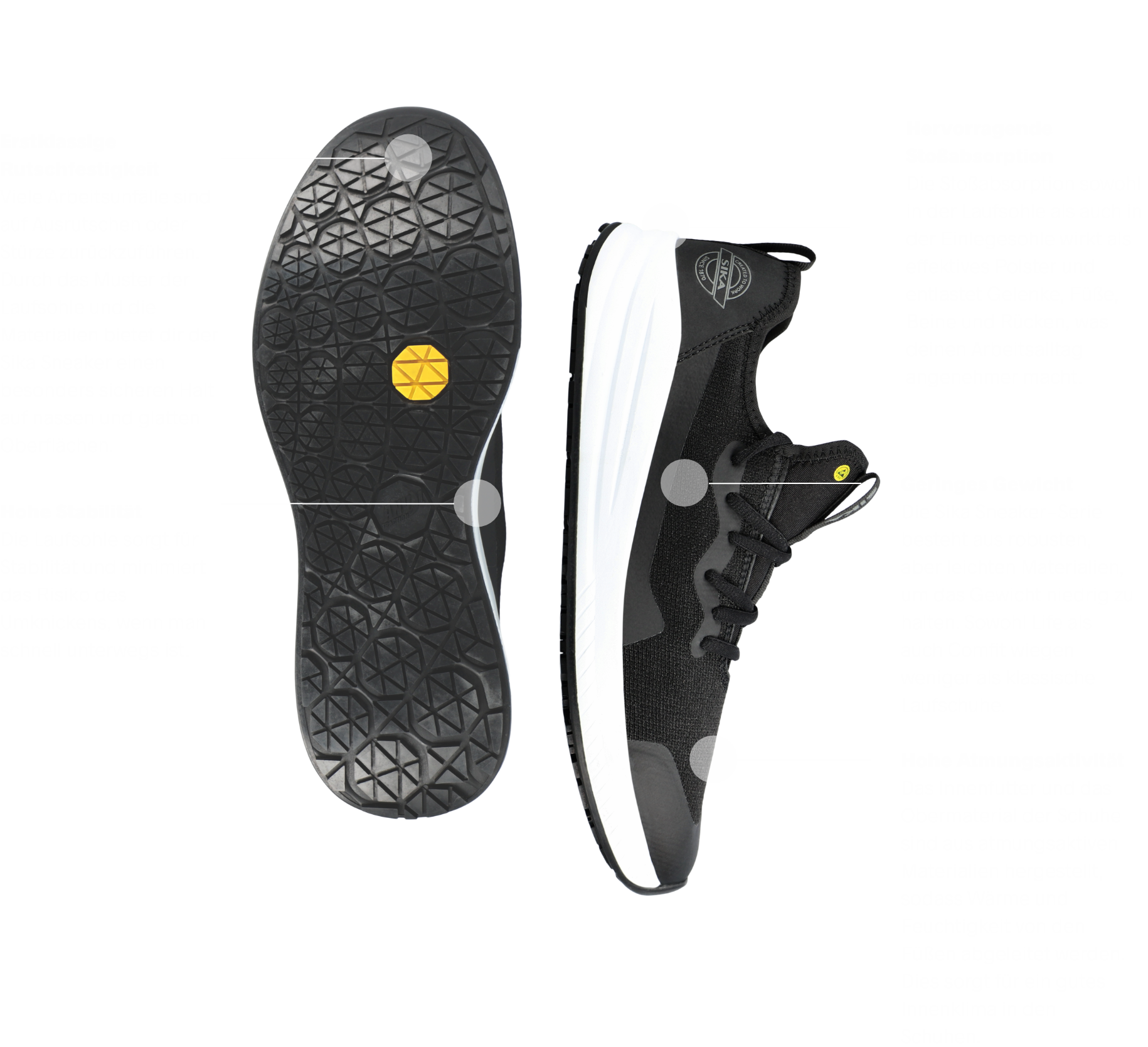 Mit SIKA Sneaker erhältst du Komfort und Funktion. Und das in einem stilsicheren Design, das auch nach der Arbeit getragen werden kann.